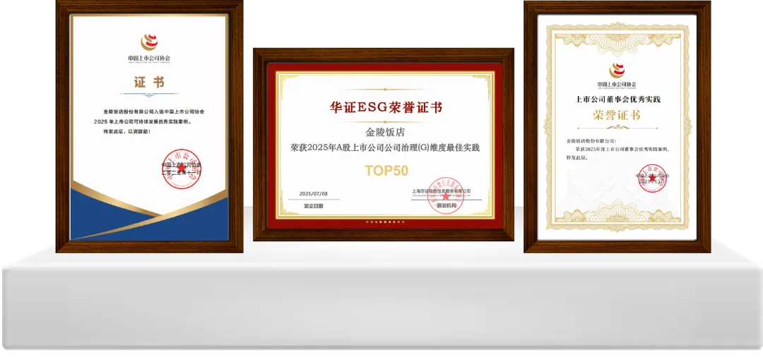 征程万里风正劲,重任千钧再出发。2025年,金陵饭店以责任为笔、以实干为墨,在经营、治理、环境与社会领域均交出了温暖厚重的答卷。未来,公司将继续秉持可持续发展理念,把ESG深度融入长期战略,以更完善的治理、更绿色的运营、更优质的服务、更负责的担当,持续创造经济、社会与环境综合价值,在高质量发展之路上行稳致远,为行业进步与社会繁荣贡献金陵力量。