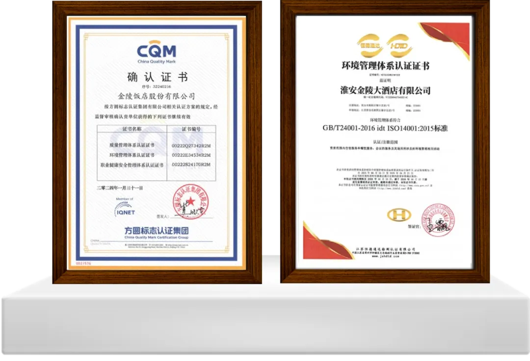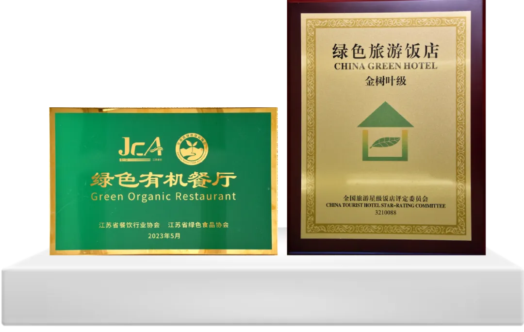金陵旗下金树叶级、银树叶级“绿色旅游饭店”14家;江苏省绿色有机餐厅5家。