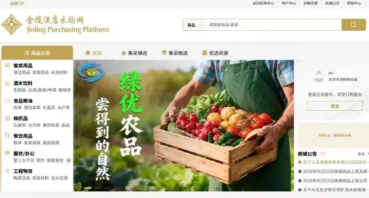 “苏优绿品”专区上线金陵酒店采购网