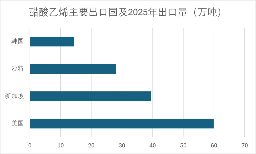 图3:2025年主要醋酸乙烯出口国出口量排序