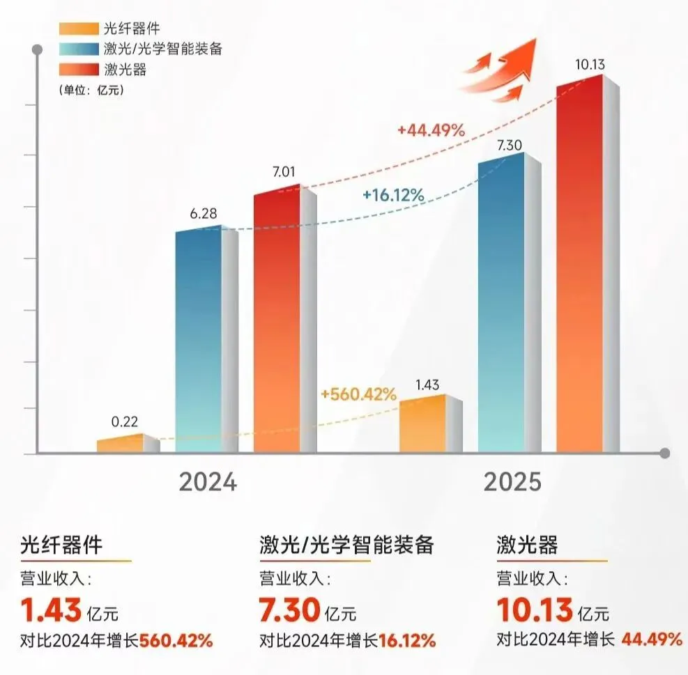 增长引擎:激光器业务稳健增长的同时,光通信业务受AI算力基建红利驱动,收入同比激增560.42%。
