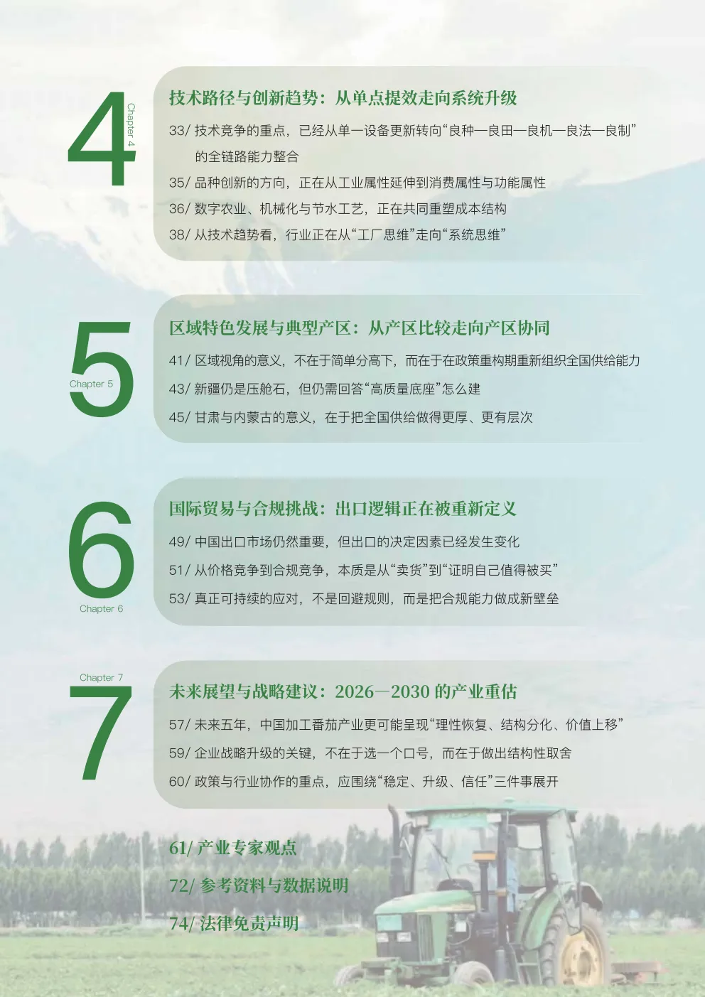 因此,白皮书并不简单沿着产量、区域、产品逐项罗列信息,而是旨在通过全球格局、供应链结构、需求场景、技术路径、区域协同、国际贸易和未来战略七个层面,重构中国加工番茄产业的分析框架。