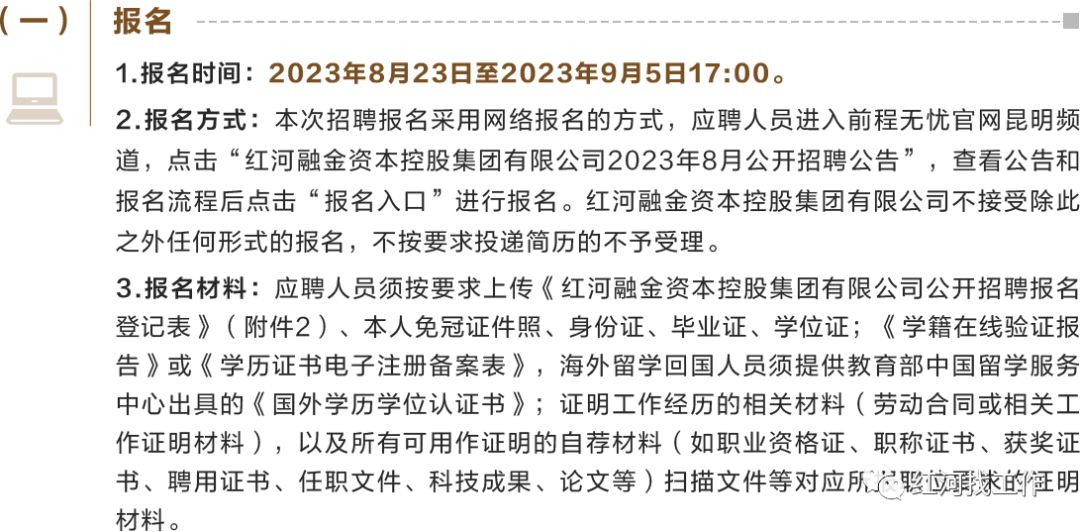 (二)红河融金资本控股集团有限公司有权根据岗位需求变化及报名情况等因素,调整、合并或取消个别岗位的招聘工作。