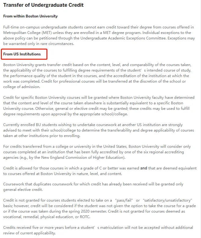BU转学分政策