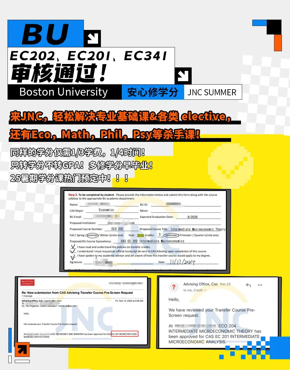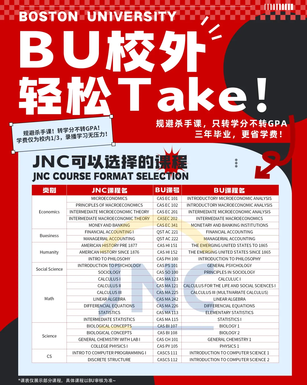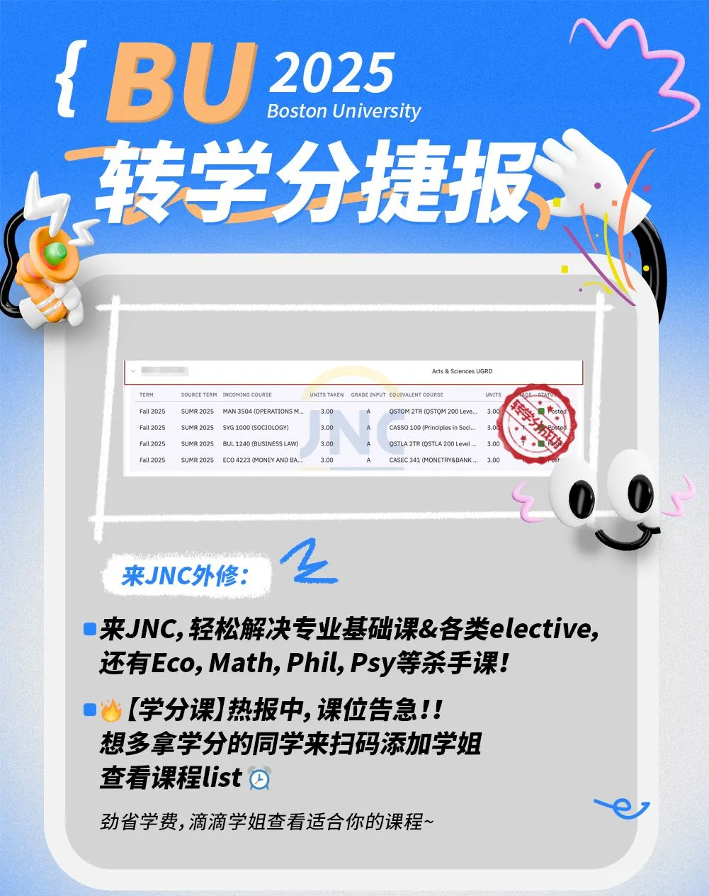JNC合作大学课程学分成功转入BU