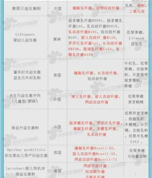 康*贝(7.060, -0.02, -0.28%)、修*、Lactobact、童*时光、合*元(原味冲剂)、OptiB*c和Lifesp*ce的产品要么只标注了菌种而未明确到菌株,要么存在国家批准范围外的菌株,因此均不符合要求。(下图标红者)