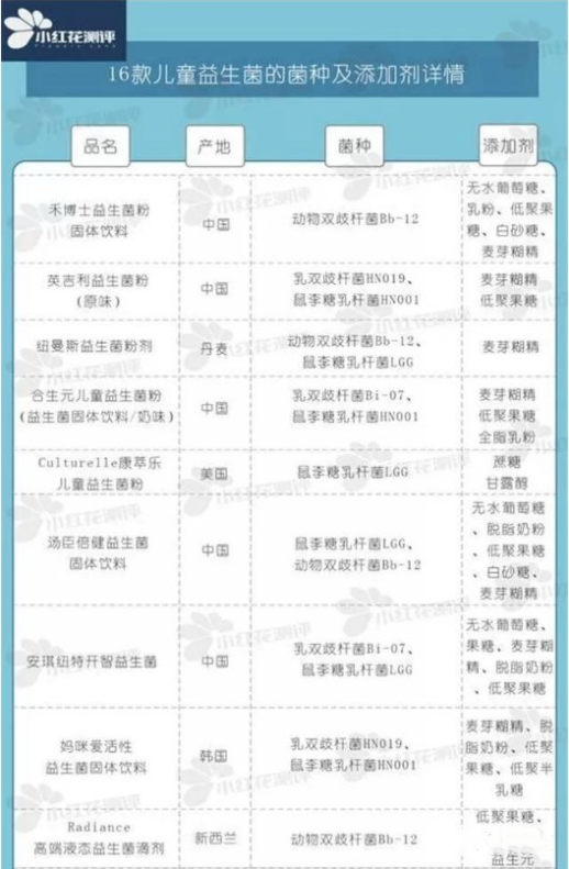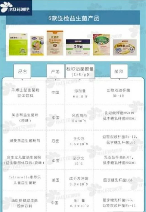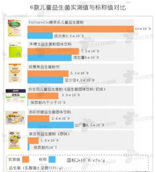 以此对照,“小红花测评”发现,在16款号称是婴幼儿益生菌的产品中,有7款产品不符合要求: