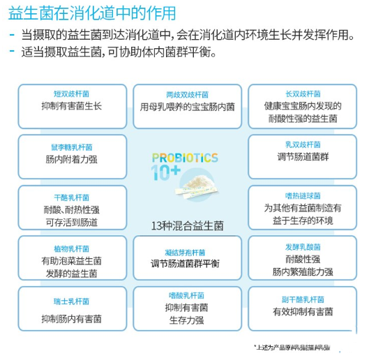 需要提醒家长们的是,在产品配料选择上,需尽量选择不含糖、人工香精、色素、防腐剂等不利于宝宝健康的产品。此外,如果宝宝对乳制品过敏的话,家长们还要注意不要选择含乳制品的益生菌粉。
