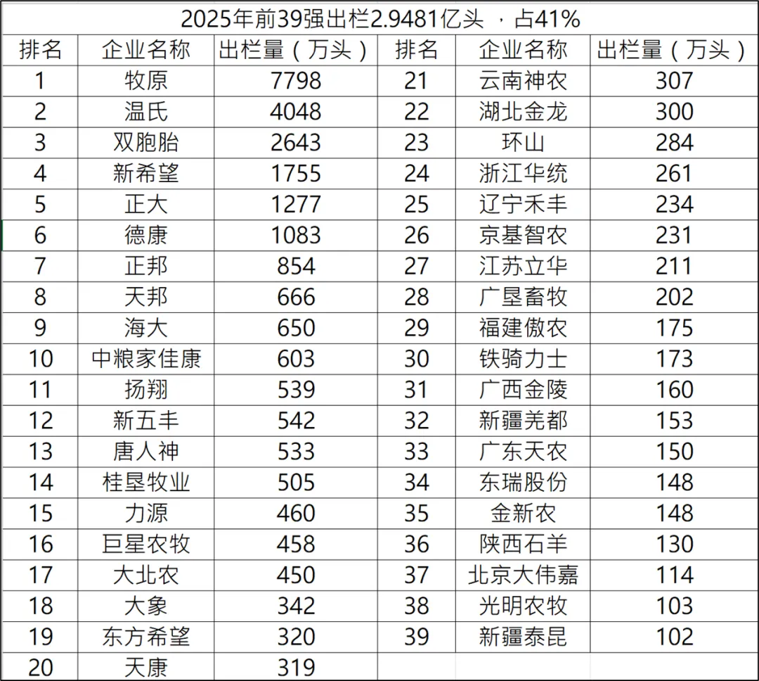 2025年中国生猪行业经历了深度调整期。根据农业农村部数据,2025年全国生猪出栏量达7.1973亿头。供给端的居高不下(见下表)与需求端的疲弱形成剧烈反差,导致行业陷入深度亏损。