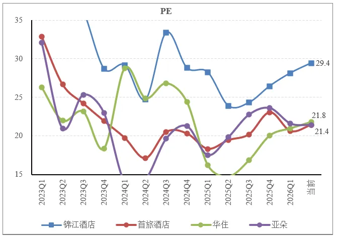 综上,我们认为,当前看26年行业整体形势比较乐观,26Q2行业RevPAR表现对全年指示意义将很大,4大头部集团看,华住、亚朵从扩张、运营以及收益指标等各方面看确定行较高,锦江境内业务有显著改善、但海外拖累并未缓减,市场基于国内业务相对乐观的表现给予锦江一定的估值溢价,我们认为有合理成份但不宜过高;首旅虽短期扩张较快,单总量已难以追赶,并且以经济型和轻管理为主,也对应其面向下沉市场的“属地策略”,从这个角度,首旅更可能跟随行业整体表现,难以有阿尔法端的弹性。