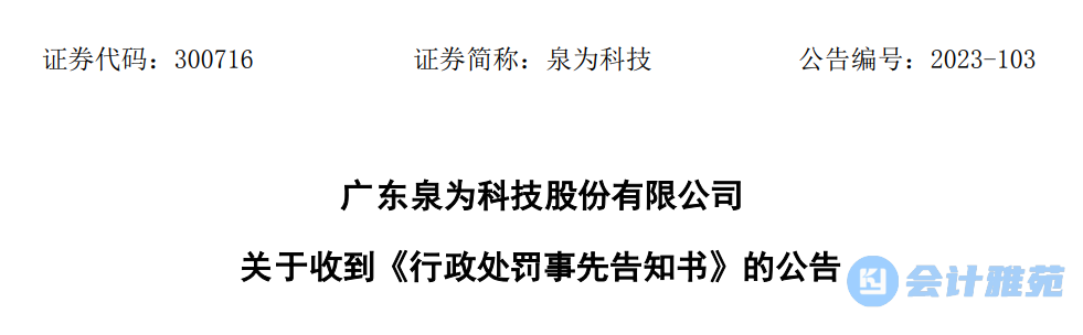 广东泉为科技股份有限公司、邵鉴棠、李佩欢、黄喜、钟宏标:广东泉为科技股份有限公司(以下简称泉为科技)涉嫌信息披露违法违规一案,已由我局调查完毕,我局依法拟对你们作出行政处罚。现将我局拟对你们作出行政处罚所根据的违法事实、理由和依据及你们享有的相关权利予以告知。2019年8月至2020年6月,泉为科技原控股子公司广东国立供应链管理有限公司(以下简称国立供应链,现已更名为广东粤立能源有限公司)开展以船运方式交易的二甲苯贸易业务,经柯永进等人介绍,与茂名市茂南钻达化工有限公司、上海邦尧能源科技有限公司、广东中谦石化有限公司、茂名市富达石油有限公司、上海创集石油化工有限公司、上海翼匡石油化工有限公司、深圳市前海金鑫银汇石油化工有限公司、珠海润盛达石油化工有限公司等8家供应商签订二甲苯采购合同,开展38批次交易。采购合同签订当日,国立供应链与冠兴石化(海南)有限公司、广东钻达石油化工有限公司、广西黄河能源有限公司、广西六祺投资有限公司、方宇石化(海南)有限公司等5家客户签订二甲苯销售合同,货品、数量与对应采购合同完全一致,约定货物由上述客户自提。同日,国立供应链作为托运人,供应商作为付款方,与相关船运公司签订租船合同,采购和销售的货物运输均由同一船运公司在同一航次中完成。上述供应商和客户存在明显异常关系,租船合同、运输单据虚假,采购、销售环节均无货物实际交付航运运输,购销货款存在资金循环情况。国立供应链开展上述业务时经营范围不包括危险化学品,主动要求柯永进同时为供应商和客户提供担保,明知相关交易多个环节明显异常,仍将上述业务按照内销产品销售业务模式全额确认营业收入,虚增营业收入和营业成本。泉为科技将上述虚增营业收入和营业成本纳入合并报表范围,2019年度虚增业务收入556,924,983.89元、营业成本552,210,788.51元,分别占当期报告记载营业收入、营业成本的21.40%、23.36%。2020年半年度虚增业务收入343,787,557.02元、营业成本340,388,234.97元,分别占当期报告记载营业收入、营业成本的28.97%、30.33%。上述有关违法事实,有上市公司公告、相关银行账户资金流水、记账凭证及原始凭证、情况说明、询问笔录等证据证明。我局认为,泉为科技公告的2019年年度报告、2020年半年度报告存在虚假记载,涉嫌违反《中华人民共和国证券法》(以下简称《证券法》)第七十八条第二款、第七十九条的规定,构成《证券法》第一百九十七条第二款所述违法行为。根据《证券法》第八十二条第三款的规定,董事、监事、高级管理人员应当保证所披露的信息真实、准确、完整。根据《信息披露违法行为行政责任认定规则》(证监会公告〔2011〕11号)第十七条的规定,董事、监事、高级管理人员之外的其他人员,确有证据证明其行为与信息披露违法行为具有直接因果关系的,应当视情形认定其为直接负责的主管人员或者其他直接责任人员。邵鉴棠作为泉为科技时任董事长、总裁,全面负责泉为科技的经营管理,决策并最终审批二甲苯业务及相关信息披露文件,签字确认保证2019年年报、2020年半年报真实、准确、完整,是对泉为科技上述信息披露违法行为直接负责的主管人员。李佩欢作为国立供应链时任总经理,负责国立供应链的日常经营管理,具体发起、联系、经办二甲苯业务,负责与供应商及客户的日常沟通,是对泉为科技上述信息披露违法行为直接负责的主管人员。黄喜作为泉为科技时任总经理、董事,主持泉为科技的生产经营管理,部分涉案期间分管国立供应链,审核二甲苯业务单据;钟宏标作为泉为科技时任财务总监,主管会计工作,审核二甲苯业务单据,二人均签字确认保证2019年年报、2020年半年报真实、准确、完整,是上述信息披露违法行为的其他直接责任人员。根据当事人违法行为的事实、性质、情节及社会危害程度,依据《证券法》第一百九十七条第二款的规定,我局拟决定:一、对广东泉为科技股份有限公司责令改正,给予警告,并处以200万元的罚款;四、对黄喜、钟宏标给予警告,并分别处以50万元的罚款。根据《中华人民共和国行政处罚法》第四十五条、第六十三条、第六十四条和《中国证券监督管理委员会行政处罚听证规则》相关规定,就我局拟对你们作出的处罚决定,你们享有陈述、申辩和要求听证的权利。你们提出的事实、理由和证据,经我局复核成立的,我局将予以采纳。如果你们放弃陈述、申辩及听证的权利,我局将按照上述事实、理由和依据作出正式的行政处罚决定。