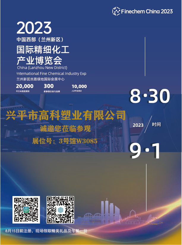 为了深入贯彻落实国家《关于“十四五”推动石化化工行业高质量发展的指导意见》,推动精细化工产业高质量发展,由甘肃省商务厅和甘肃省工业和信息化厅作为指导单位,中国化工学会和兰州新区管理委员会主办的2023中国西部(兰州新区)国际精细化工产业博览会将于8月30日-9月1日在甘肃省兰州新区丝路绿地国际会展中心举办。本届博览会展出面积2万多平米,吸引了来自海内外200 多家优秀企业参与展出,来自化学品生产商投资商、高校研究院所等6000多专业人士到场参观洽谈。