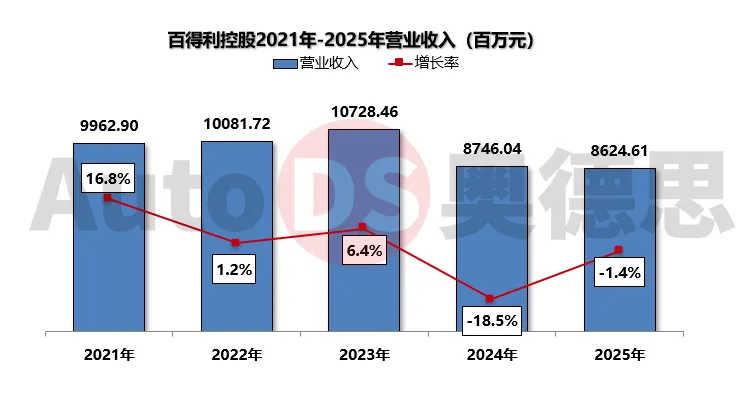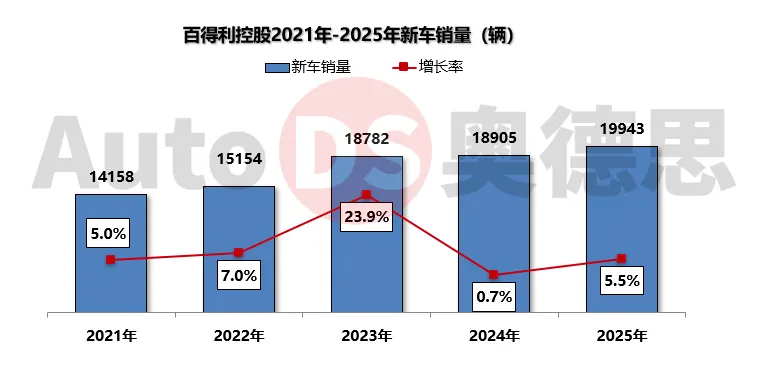 2025年,百得利控股实现汽车销售共19943辆,较2024年同期增长5.5%。