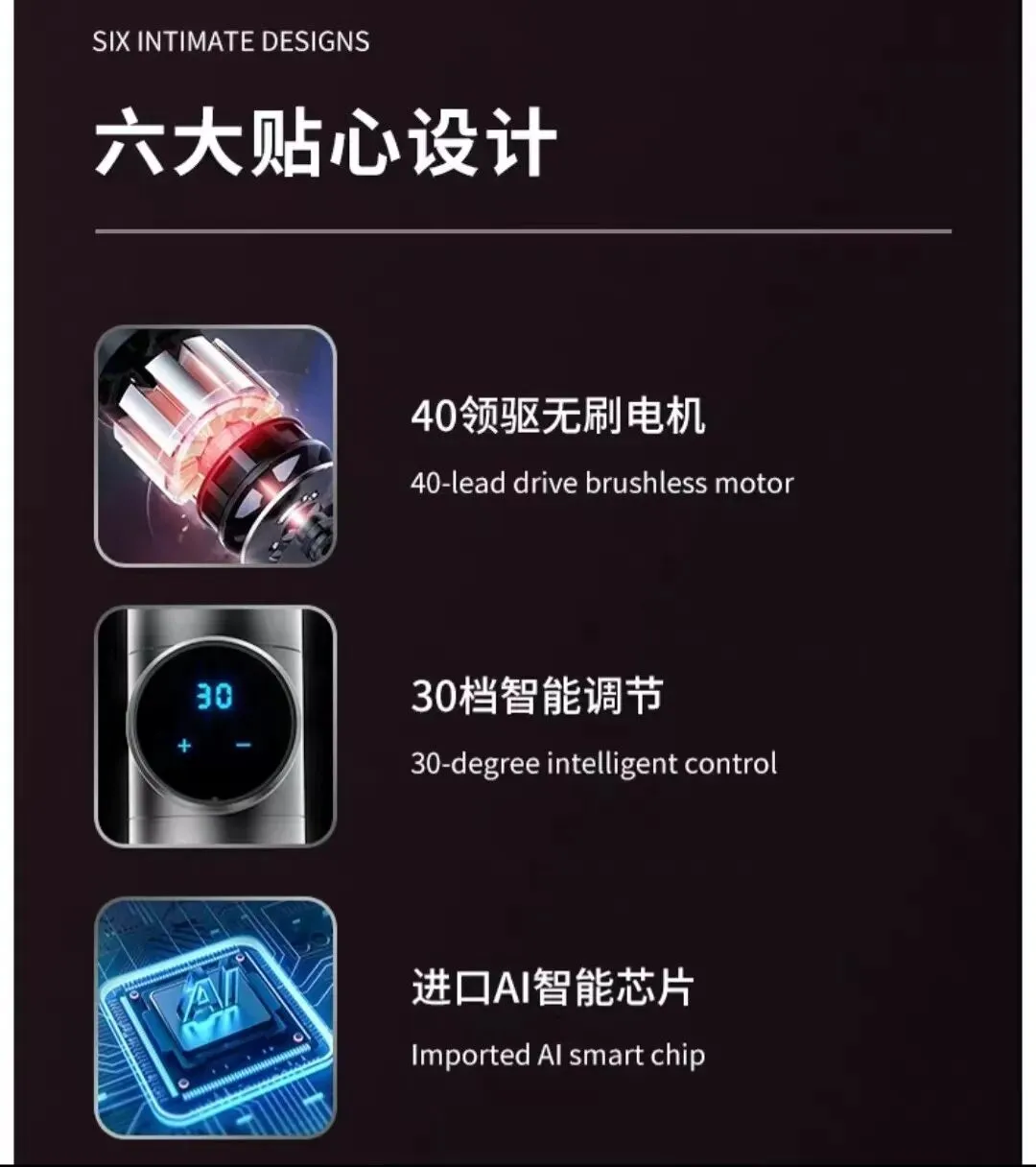 功能与适配的平衡:30档力度调节+6款专业按摩头,覆盖全年龄段、全场景需求,一台设备满足全家使用,无需额外购买多台,性价比拉满;