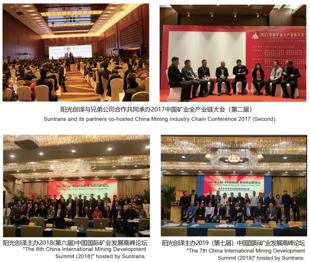 阳光创译的核心定位已经由最初的“阳光创译=矿业翻译”——中国地质矿业翻译领军品牌逐渐延伸扩展成“阳光创译=中国国际矿业服务大平台”,涵盖矿业翻译、矿业会展、矿业咨询、矿业猎头、“一带一路”矿业商会、矿业媒体等国际矿业服务板。
