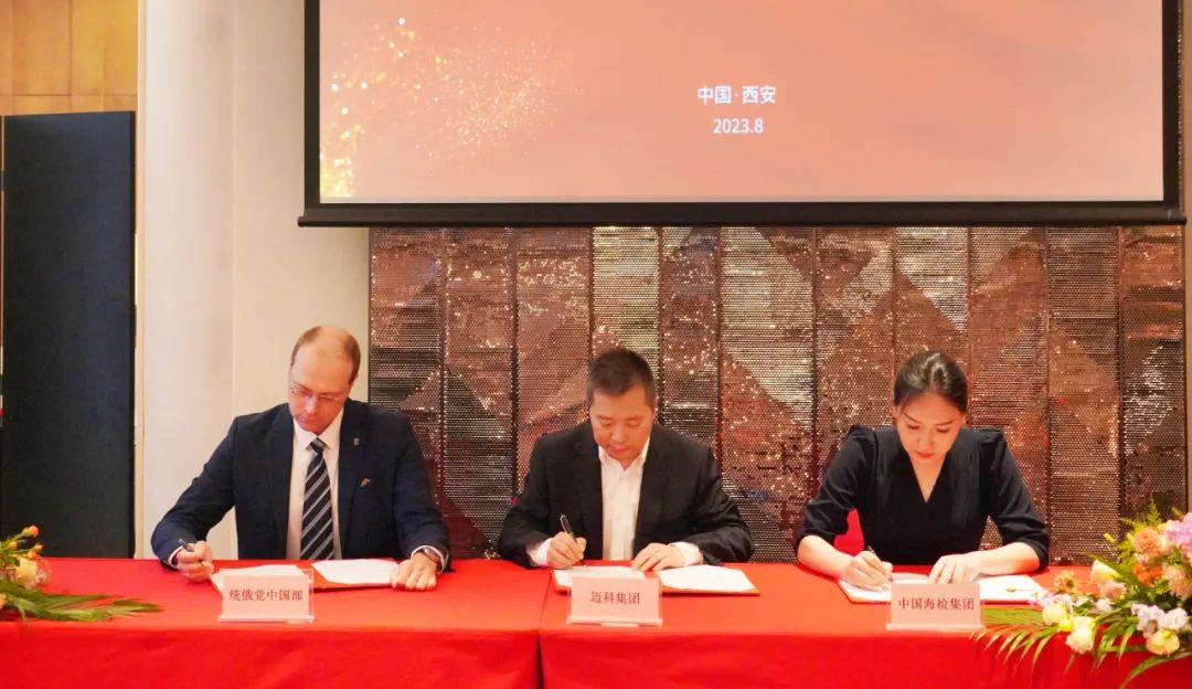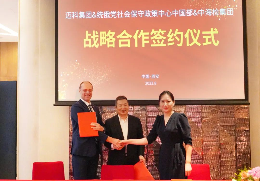8月23日,俄罗斯统一俄罗斯党社会保守政策中心中国部(以下简称“统俄党中国部”)、中国海检产业集团有限公司(以下简称“中国海检集团”)、西安迈科金属国际集团有限公司(以下简称“迈科集团”),三方围绕共同参与俄罗斯与中国友好关系交流领域合作,整合各方资源优势、共同探索“中俄友好系列项目”落地实施,加大产业投资和加速产业发展等方向,在陕西西安签订战略合作协议。