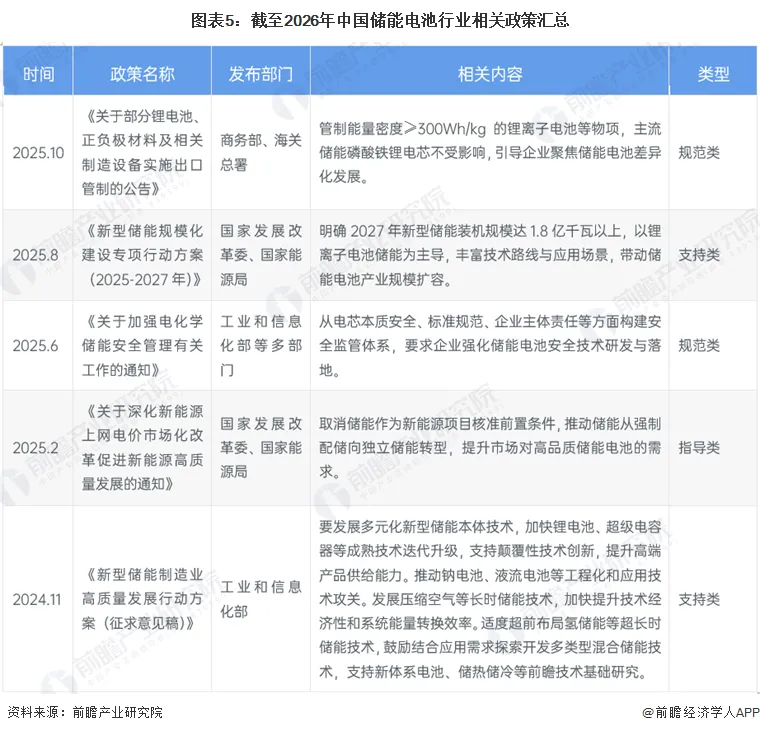 规范类政策以首部储能锂电池安全强制性国标为核心,叠加电化学储能安全管理通知,构建全链条安全监管与标准体系,淘汰低质产能;出口管制政策精准管控高能密度电芯及核心制造设备,引导企业聚焦储能领域差异化发展。