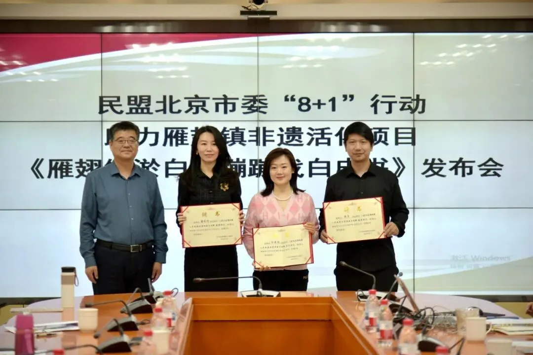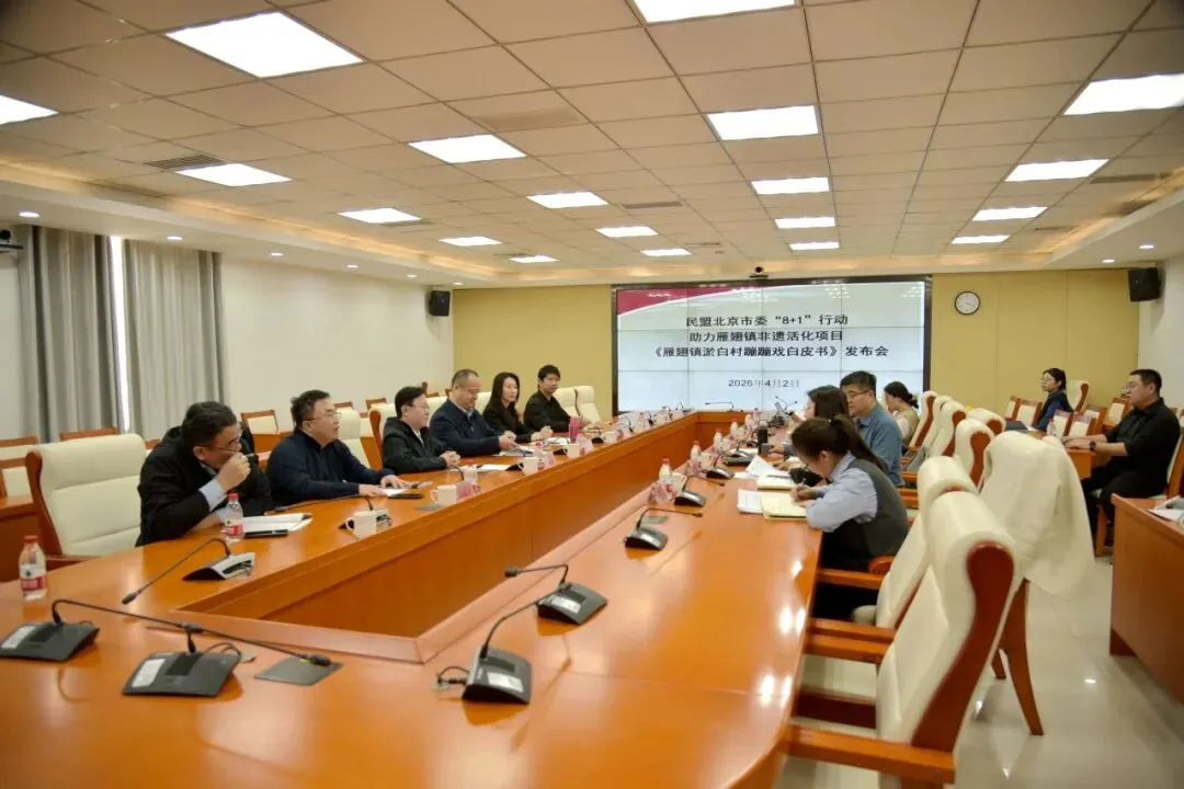 4月2日,让非遗“活起来”—雁翅镇非物质文化遗产保护利用项目《雁翅镇淤白村蹦蹦戏白皮书》发布会在雁翅镇政府顺利召开。民盟北京市委专职副主委田庆奇、雁翅镇党委书记李岿然,门头沟区委统战部、区文旅局相关负责人员,民盟北京市委、中国音乐学院、中华文化促进会等单位的专家学者,非遗传承人代表参加本次活动。
