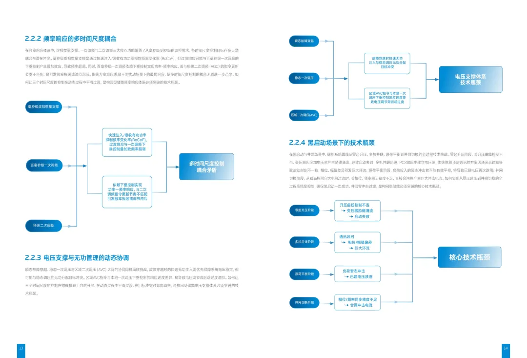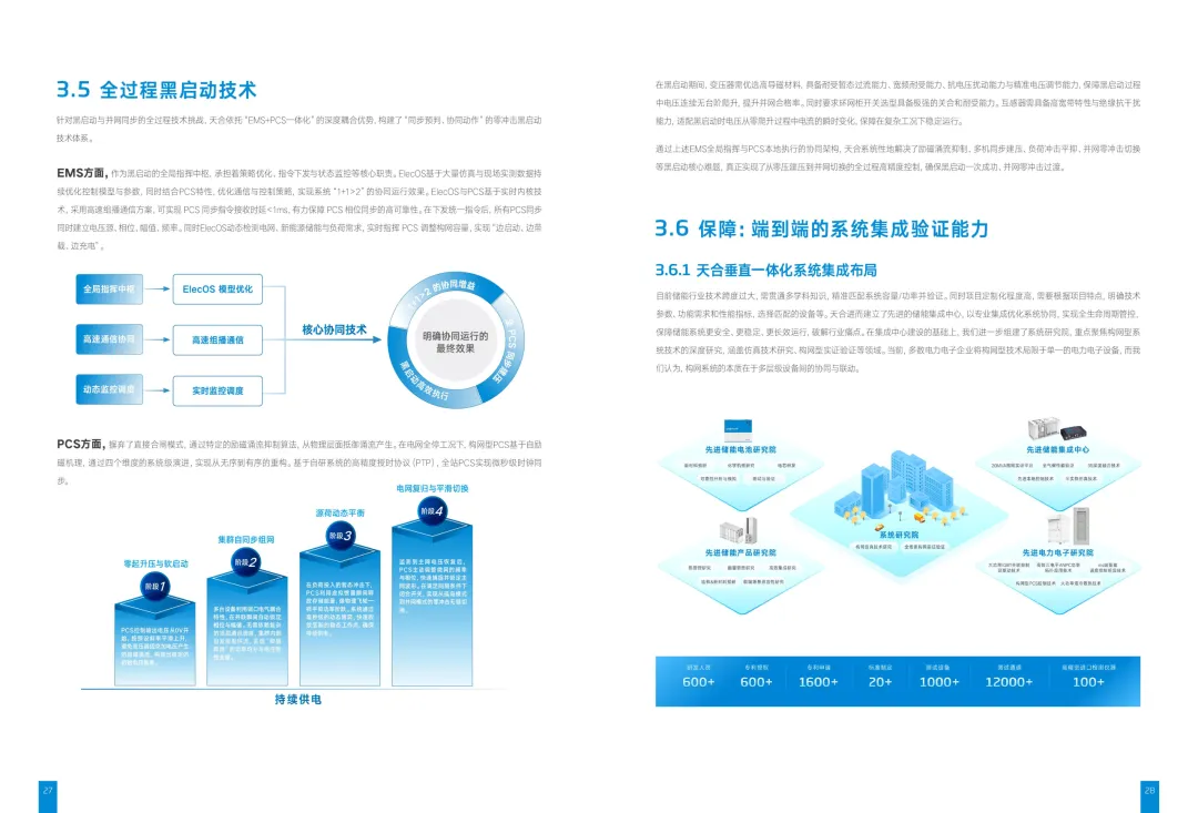 白皮书指出,传统跟网型储能在弱电网环境下稳定性显著下降,而构网型储能通过电压源控制、虚拟惯量模拟、黑启动等核心能力,能够主动建立电网频率与电压基准,成为复杂电网中的“智能锚点”。与此同时,天合还针对多模式无缝切换、多尺度频率响应耦合、黑启动全过程控制等行业难题,提出了零感知自适应控制、分层解耦协同等创新技术路径。