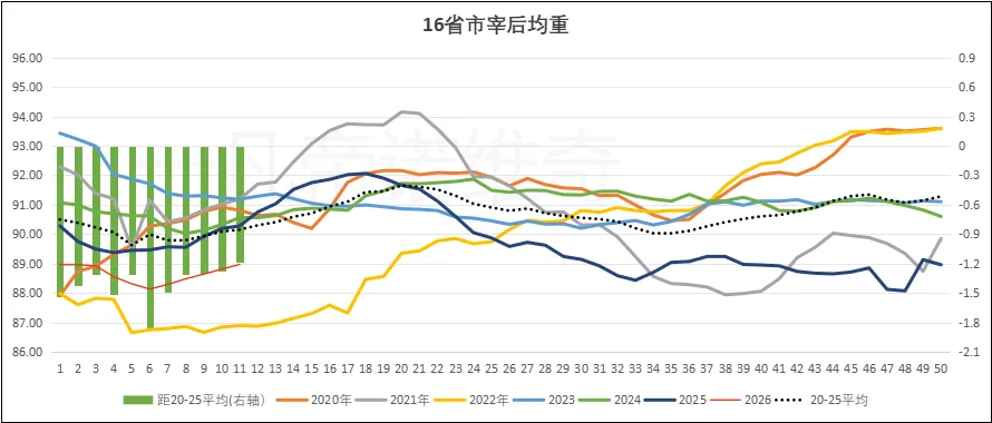 二、十六省市宰后均重与猪价