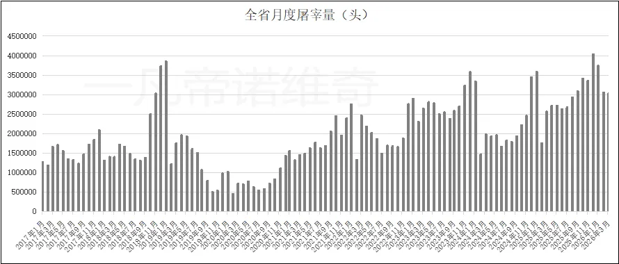 2026年3月HN省共屠宰生猪302.64万头,同比增长18.12%,环比下降0.75%。1-3月共屠宰生猪981.29万头,同比增长24.22%。