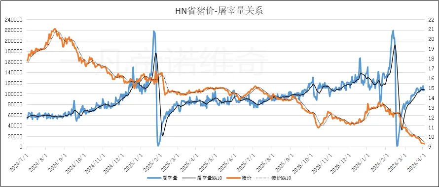 六、HN省屠宰量与猪价