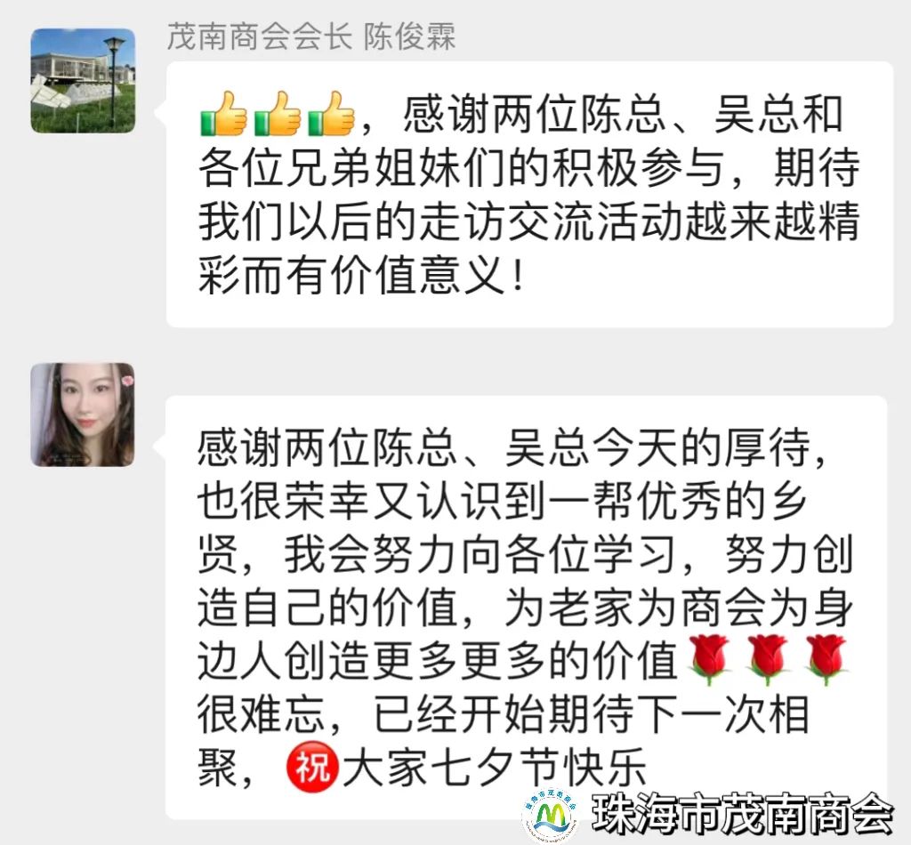 8月21日下午,珠海市茂南商会会长陈俊霖率秘书长郑雁、副会长兼青委会执行主任陈俊奕、副会长陈玉彬、理事简林杰、林碧第、温小兰、陈洛瑜、陈赞梅理事代表及会员梁金龙、柯嘉瑜走访我会副会长陈贺华、理事吴创铭、理事陈土金三家会员企业,商会一行共16人参与走访。