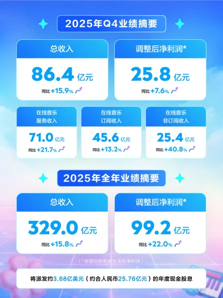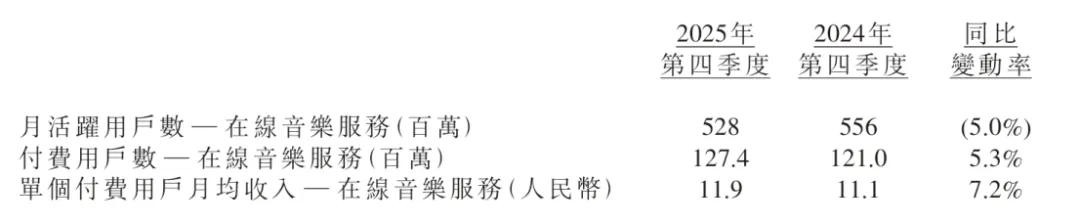 作为核心营收来源的在线音乐订阅收入,2025年虽有增幅,但增速呈现逐季下滑态势,增速放缓的趋势明显。