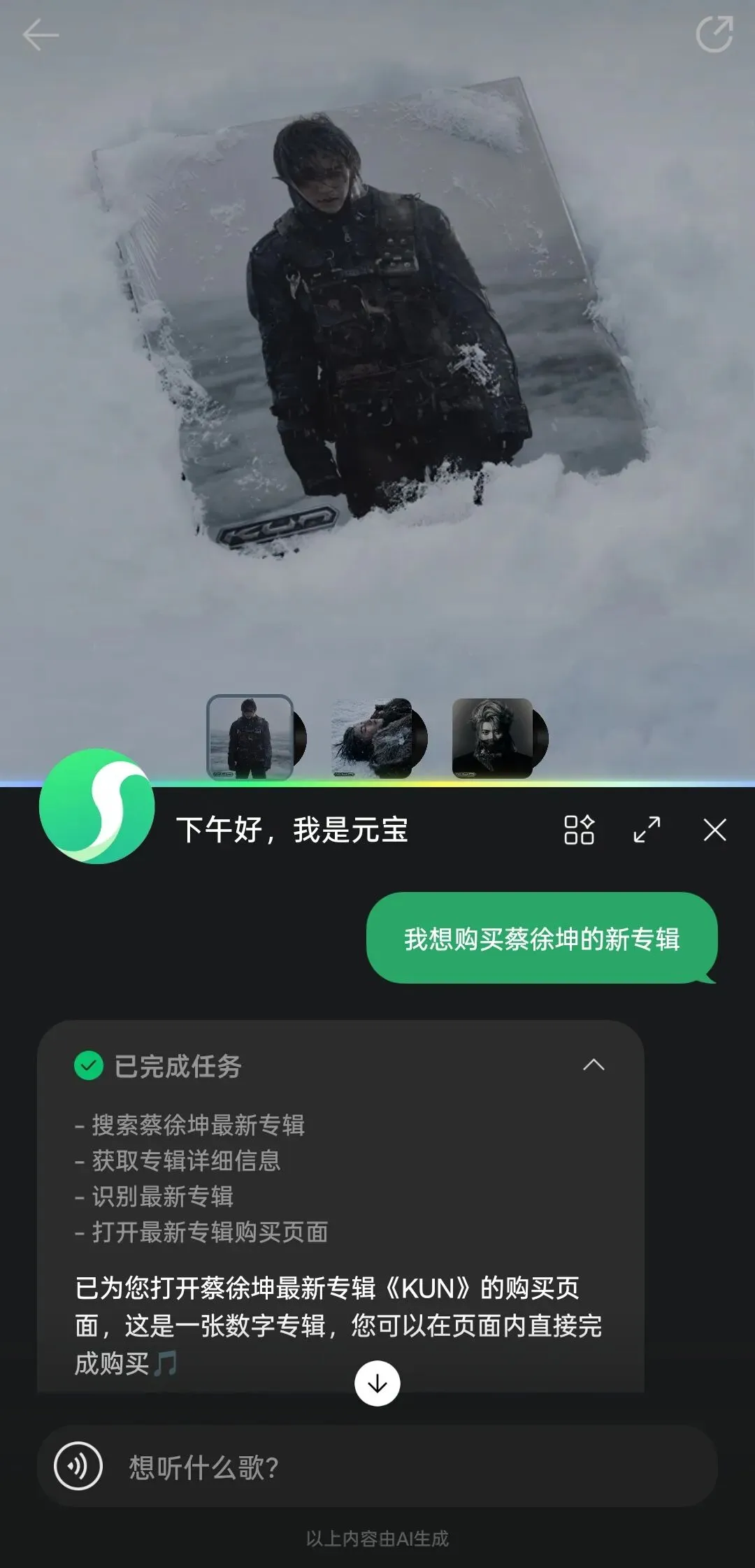 除此之外,AI模型如何进行音乐收听与筛选也成为了各平台的竞争点,模型也成为了连接不同入口的中心点,比如在QQ音乐上可以通过元宝得到音乐的具体内容阐释、推荐与触达。