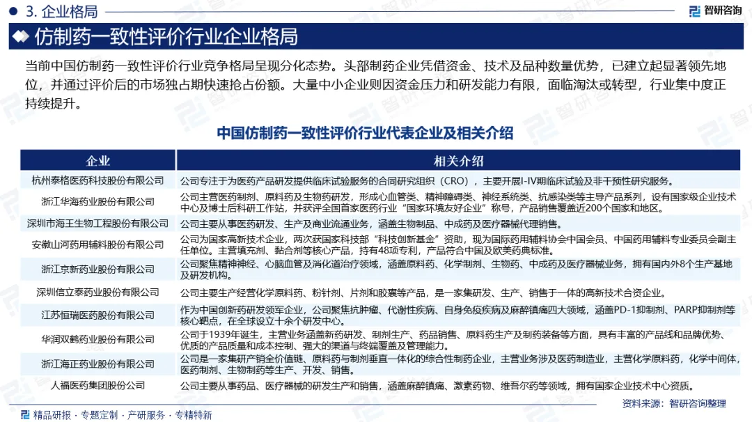 基于此,依托智研咨询旗下仿制药一致性评价行业研究团队深厚的市场洞察力,并结合多年调研数据与一线实战需求,智研咨询推出《2026-2032年中国仿制药一致性评价行业市场现状调查及发展趋向研判报告》。本报告立足仿制药一致性评价新视角,聚焦行业核心议题——变化趋势(怎么变)、用户需求(要什么)、投放选择(投向哪)、运营方法(如何投)及实践案例(看一看),期待携手行业伙伴,共谋行业发展新格局、新机遇,推动仿制药一致性评价行业发展。深耕中国仿制药一致性评价领域十余年,智研咨询愿携手行业企业,提供有效信息、专业咨询及定制化解决方案,助力仿制药一致性评价产业持续发展。