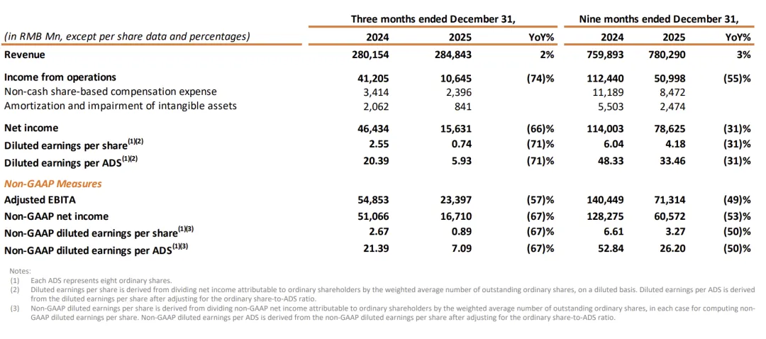 腾讯阿里财报发布,一个稳健一个大崩,绩后股价双双大跌7%;船大难掉头,赔本赚吆喝的状态什么时候能挺过去?