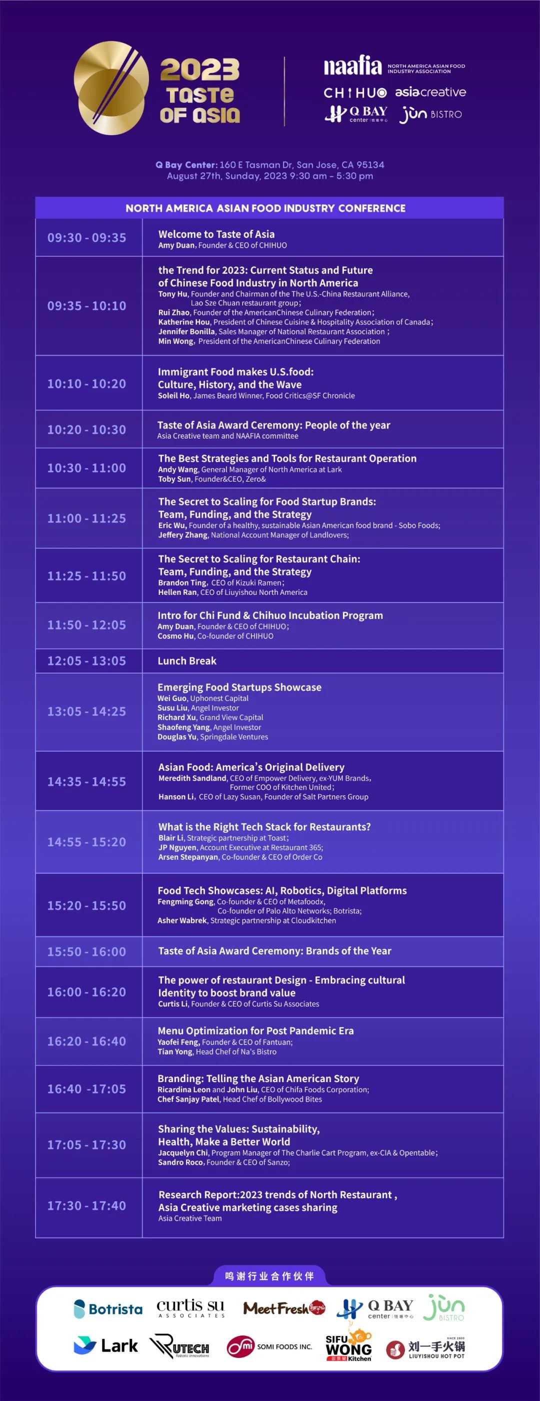 本次峰会将揭晓第五届“亚洲赏味榜”(Taste of Asia Awards)获奖名单,表彰和促进北美亚裔餐饮文化,展示和支持北美亚裔餐饮品牌蓬勃发展的美食界。
