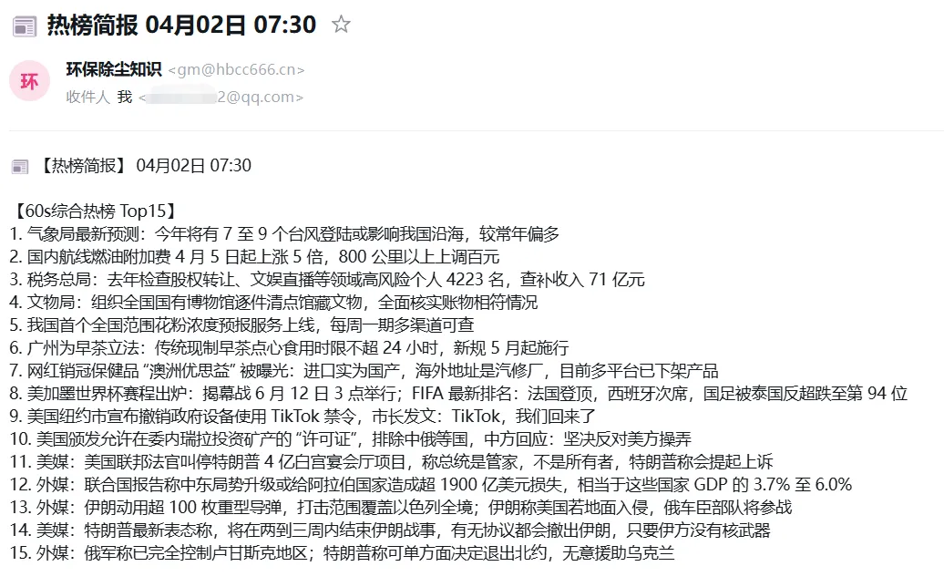 下图是每天给我推送的热榜简报