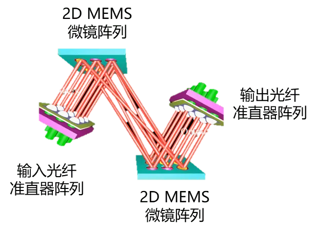 MEMS 光交换工作原理示意图