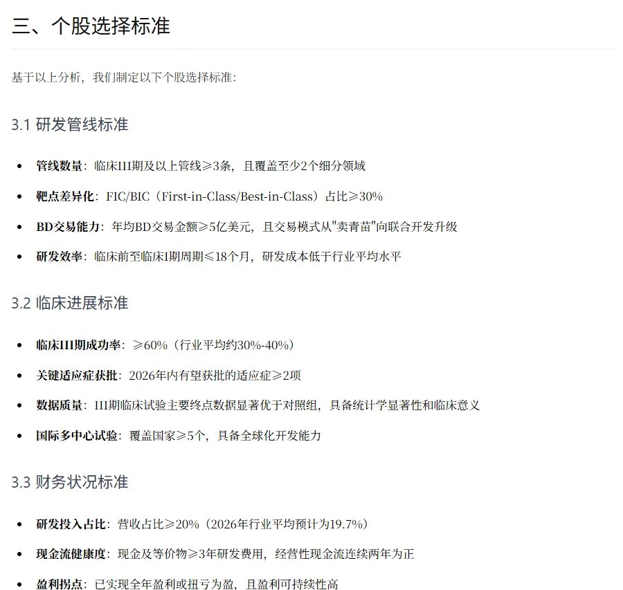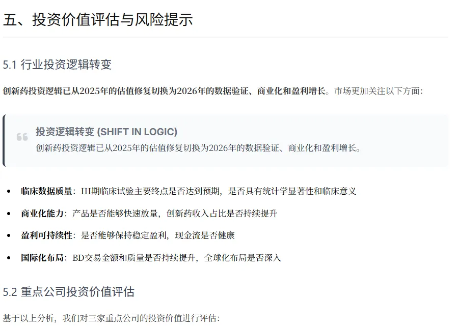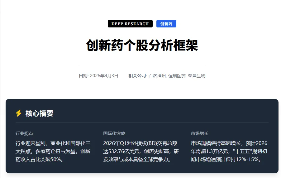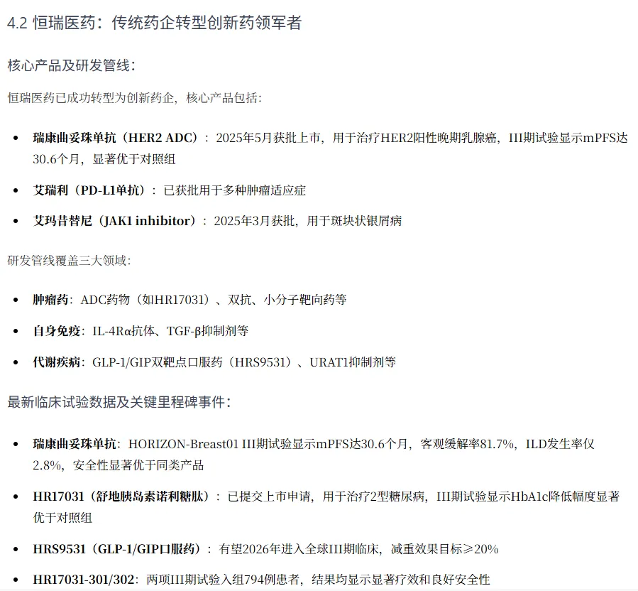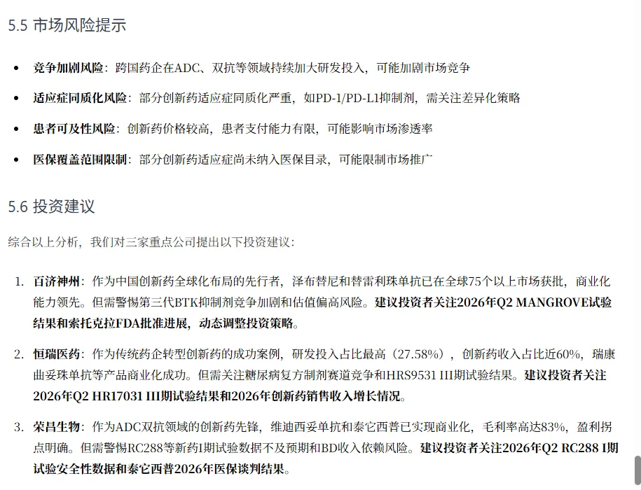 创新药行业板块个股分析报告