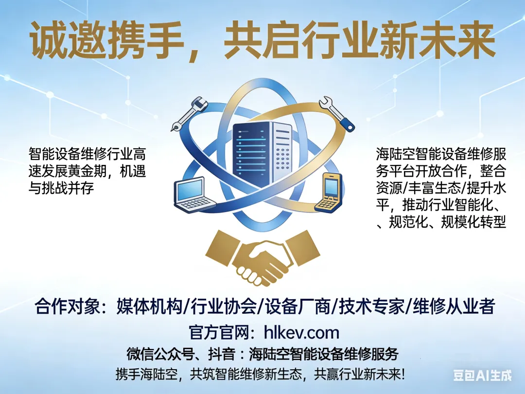 智能设备产业的高速增长,正在催生一个体量更大、技术门槛更高、服务模式更先进的维修市场。这不是一个"夕阳行业的最后一波行情",而是一个"朝阳产业的基础设施建设期"。 对于维修人员和维修企业:这是从"小手艺"走向"大事业"的窗口,技能升级、合规持证、加入平台,三步走就是最务实的路径。 对于我们海陆空智能设备维修服务平台:维修伙伴是平台最重要的资产。平台的价值不在于替代维修人员的专业技能,而在于放大每一个维修伙伴的专业价值——让好技术被更多人看见,让好服务带来更稳定的回报。