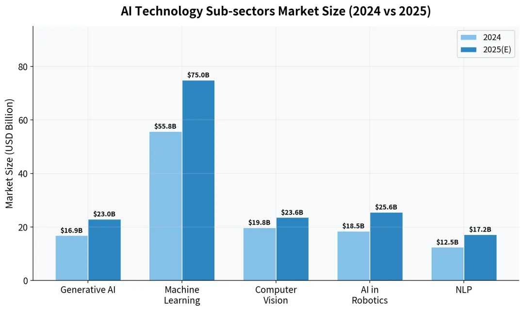 图5:AI技术子领域市场规模对比(2024 vs 2025)