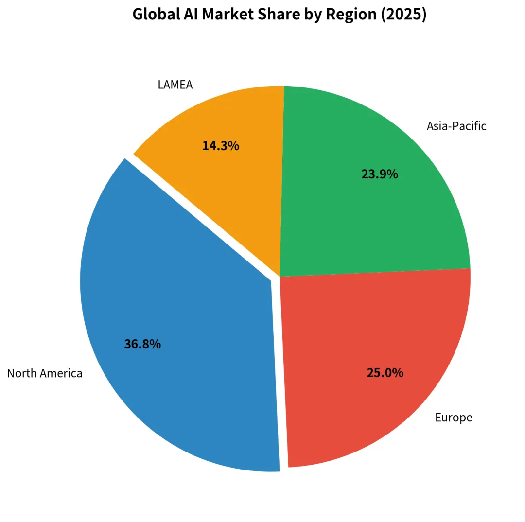 全球AI市场在市场份额和投资集中度方面呈现显著的地理差异。