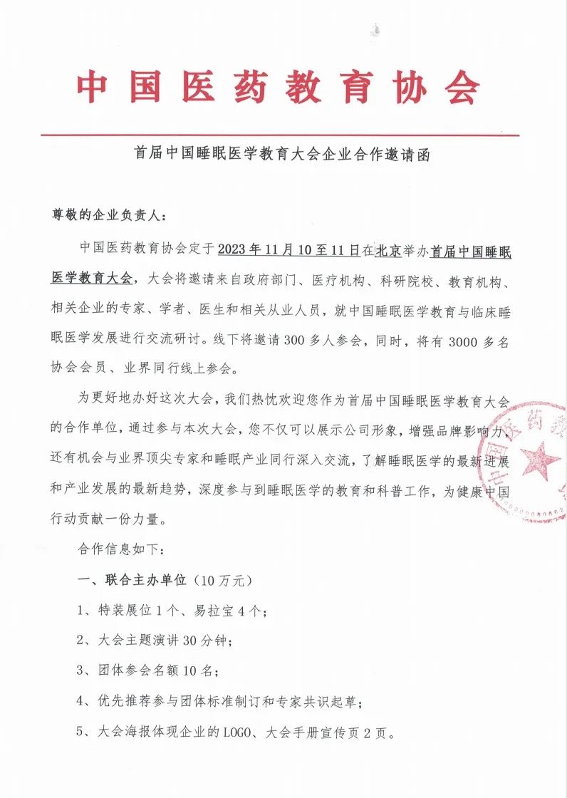 首届中国睡眠医学教育大会企业合作邀请函