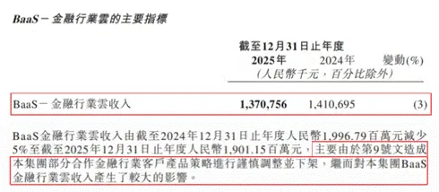 因此,百融云创BaaS金融行业云2025年上半年还收入8.57亿元,同比增长45%,占总收入的53%。而到年底仅录得13.71亿元,同比下滑3%,也就是说该板块下半年只收入了5.14亿元。