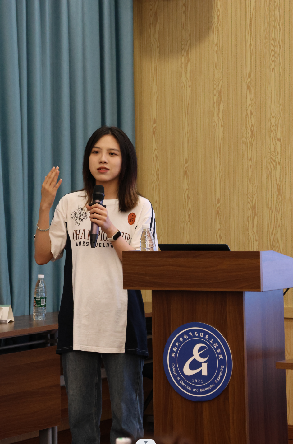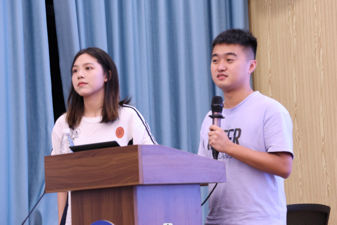 会议第一项,由辅导员助理上台进行自我介绍。周婕简要总结了暑期后勤组工作内容,鼓励各位学助积极工作、一起欢迎电气院的新鲜血液!同时,其他几位辅导员助理就宣传、文案、资助等方面概述了工作内容。