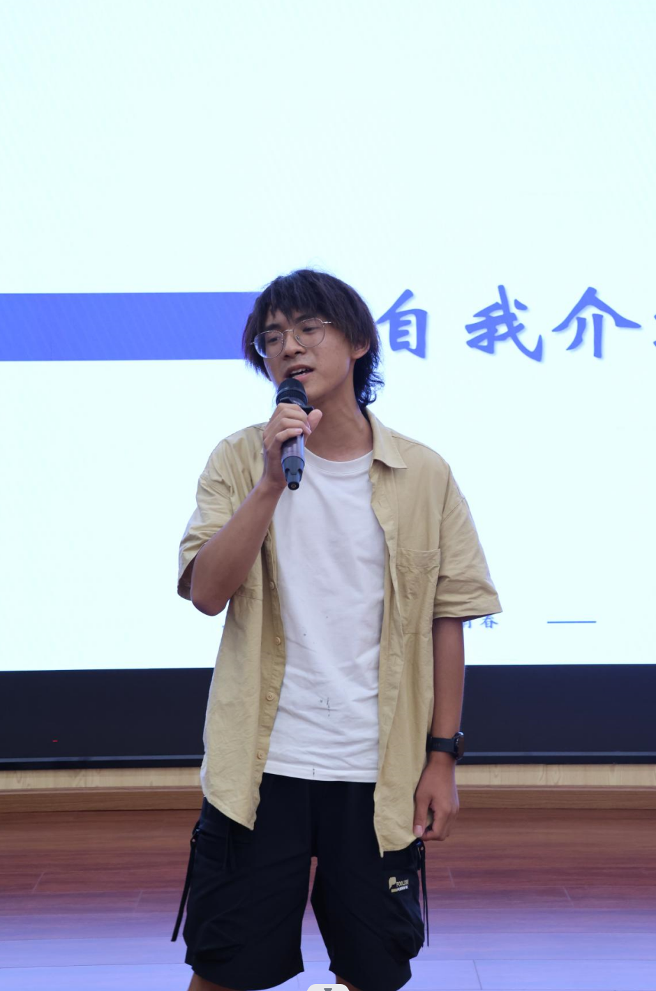 会议第二项是各位学生助理上台进行自我介绍与才艺表演。