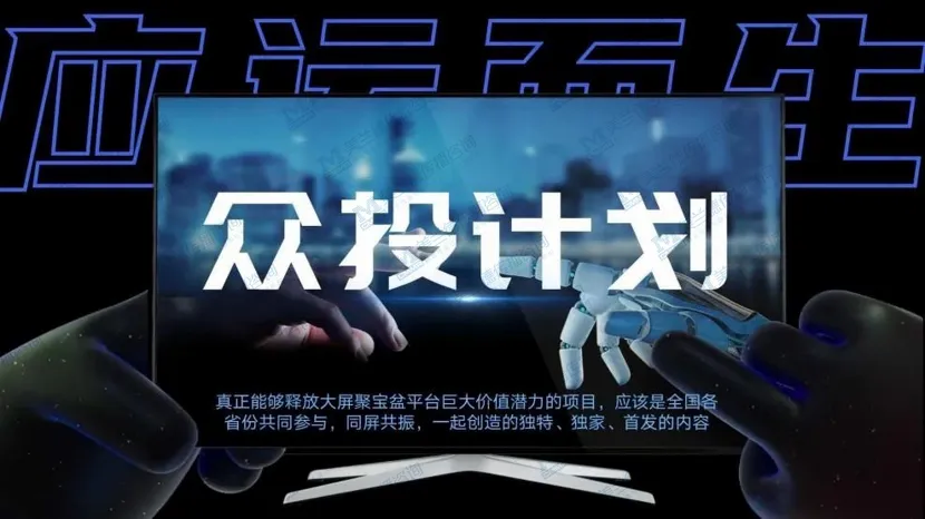 众投计划是基于大屏聚宝盆平台,由全国各省市新媒体共同打造的内容联合创投计划,致力打造更具行业影响力的IPTV大屏自制内容、建立更灵活高效的内容制作模式、开发更具想象力的商务创收模式等,以“共投、共创、共享”为基本原则,共同寻找IPTV行业的新业务增长点。