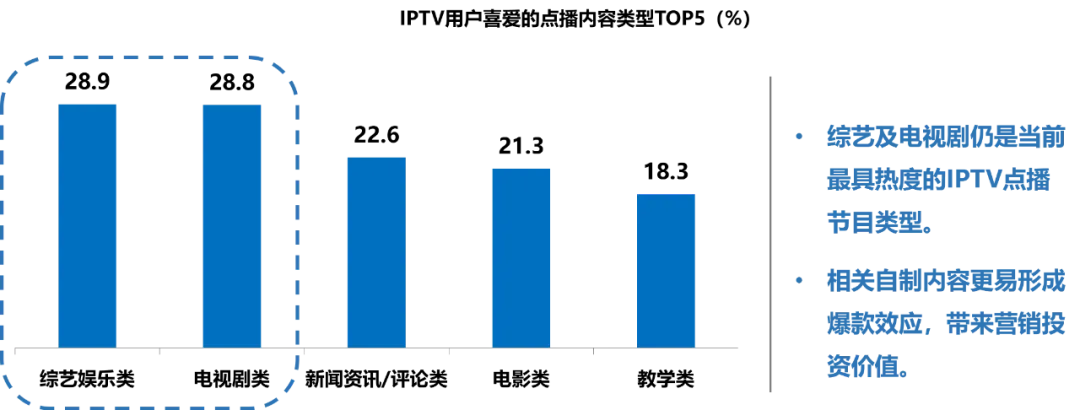 IPTV用户喜爱的点播内容类型TOP5(%)