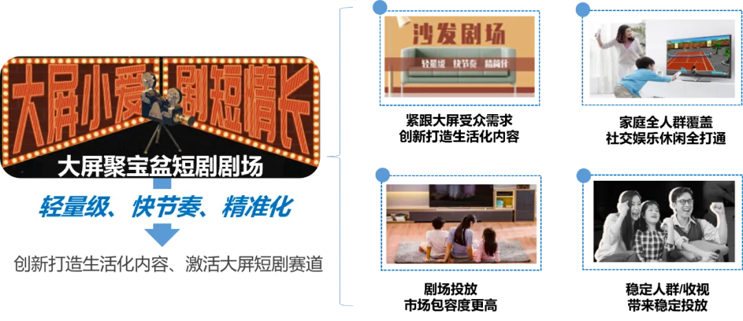 短剧剧场也将依托大屏聚宝盆线上软广+硬广组合导流、线下场景化内容营销、品牌专属内容定制等全链路营销优势,塑造出独特的短剧营销模型。