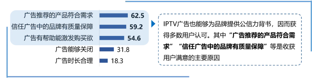 IPTV用户对目前IPTV广告满意原因TOP5 (%)