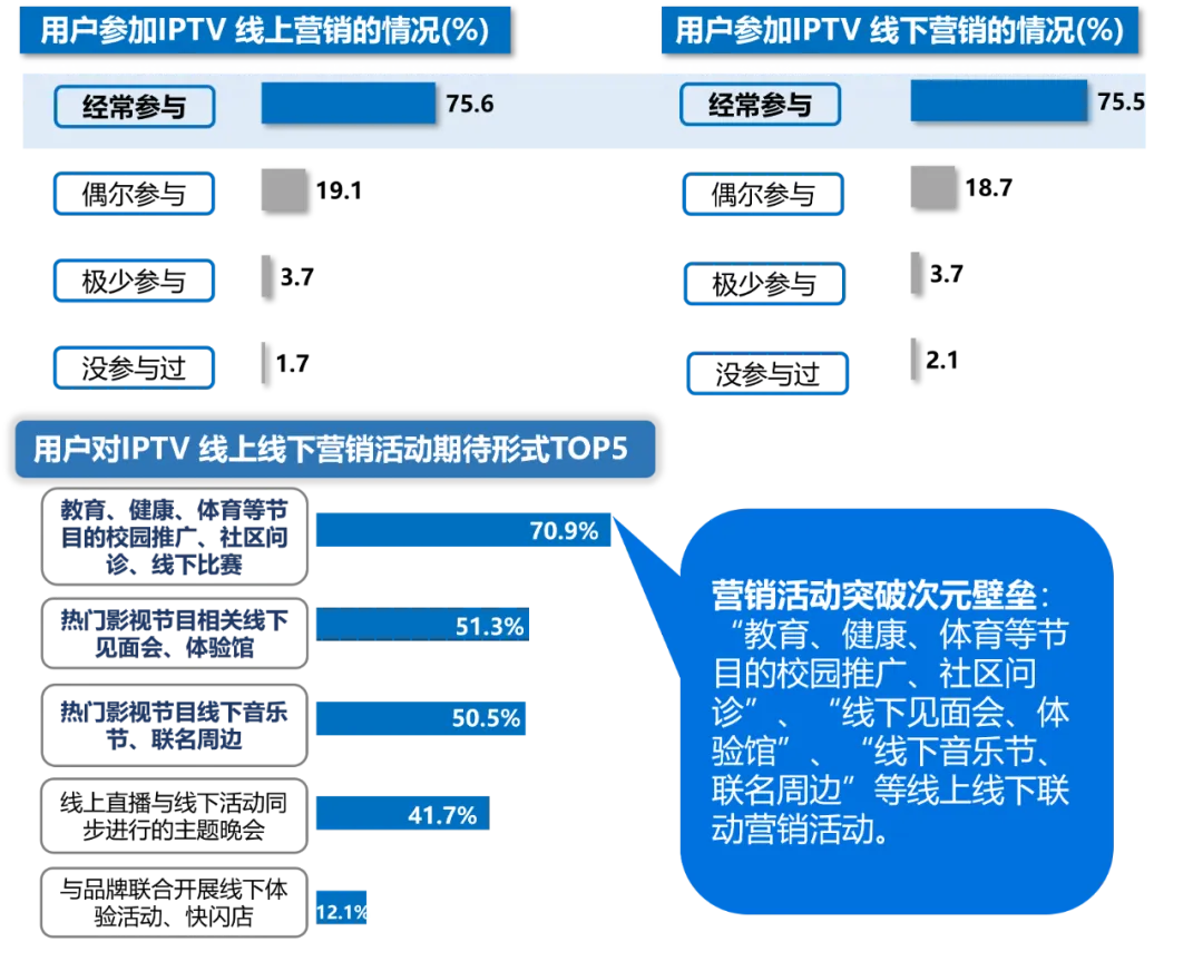 IPTV用户对IPTV线上线下营销活动参与情况及期待形式TOP5