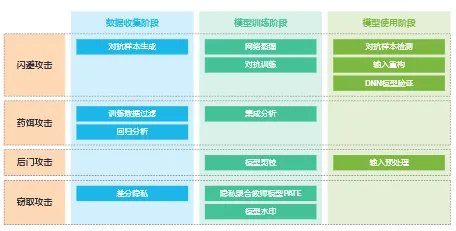 防闪避:对抗训练、网络蒸馏、对抗样本检测、输入重构 防毒饵:数据过滤、回归分析、异常检测、集成模型 防后门:输入预处理、模型剪枝 防窃取:差分隐私、模型水印、PATE隐私聚合模型