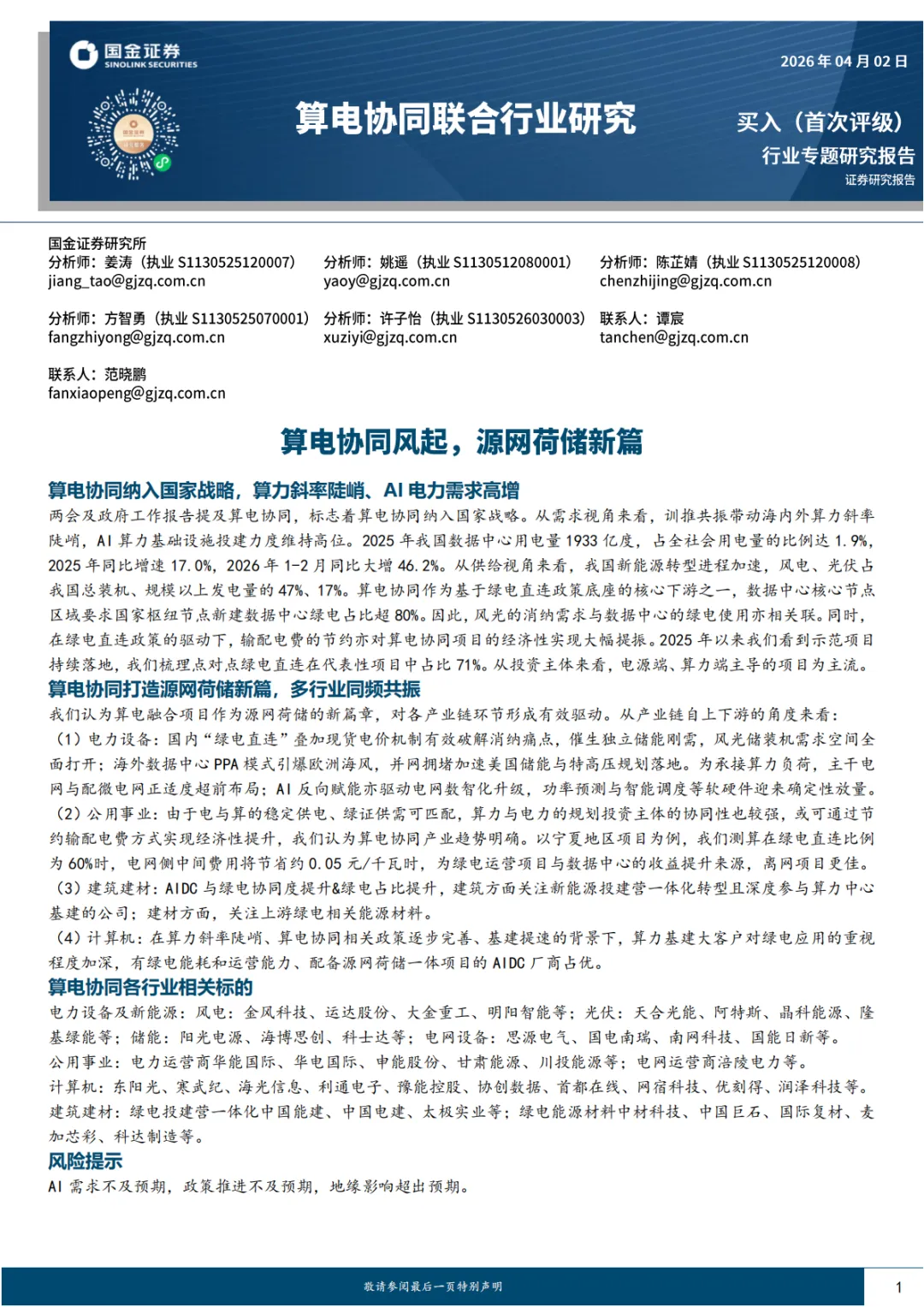 本期文章: 『研报』算电协同联合行业研究报告:算电协同风起,源网荷储新篇