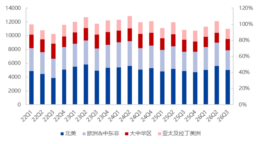 分品牌, Nike 收入为 110.1 亿美元,同比增长 1.1%;Converse 收入为 2.6亿美元,同比下降 34.8%;Corporate 收入为 0.03 亿美元,同比增长 111.5%。Nike 收入实现同比正增长,核心品牌仍具备一定经营韧性。即便在中国承压、数字渠道调整、关税上升等多重压力下,Nike仍能够依靠北美和核心运动品类维持整体盘面稳定,为公司整体收入端提供了基础支撑,Converse 的表现则偏弱。对集团整体而言,公司的修复仍主要集中于核心主品牌 Nike。